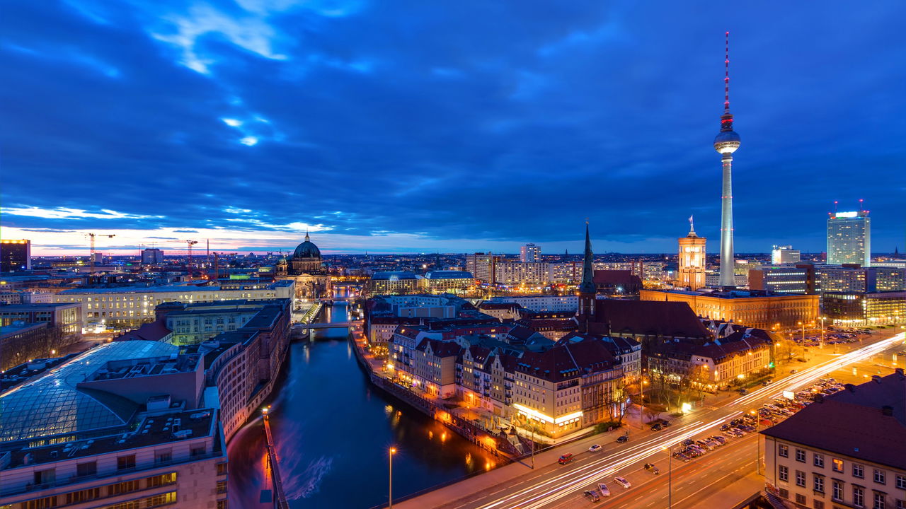 - Torre de TV de Berlim (Fernsehturm): Proporciona vistas panorâmicas da cidade à noite, com a opção de jantar no restaurante giratório.